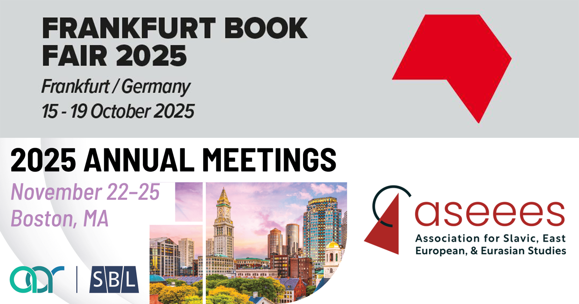 Over the next two months, Holy Trinity Publications will once again participate in the Frankfurt Book Fair, the Annual Meetings of the American Academy of Religion and Society for Biblical Literature (AAR/SBL) in Boston, and the Association for Slavic, East European and Eurasian Studies Annual (ASEEES) Convention in Washington DC.