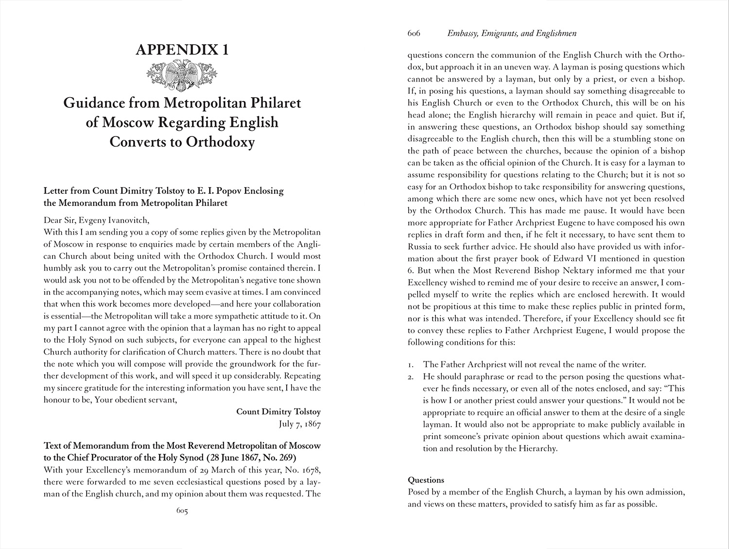Appendix 1 Guidance from Metropolitan Philaret of Moscow Regarding English Converts to Orthodoxy