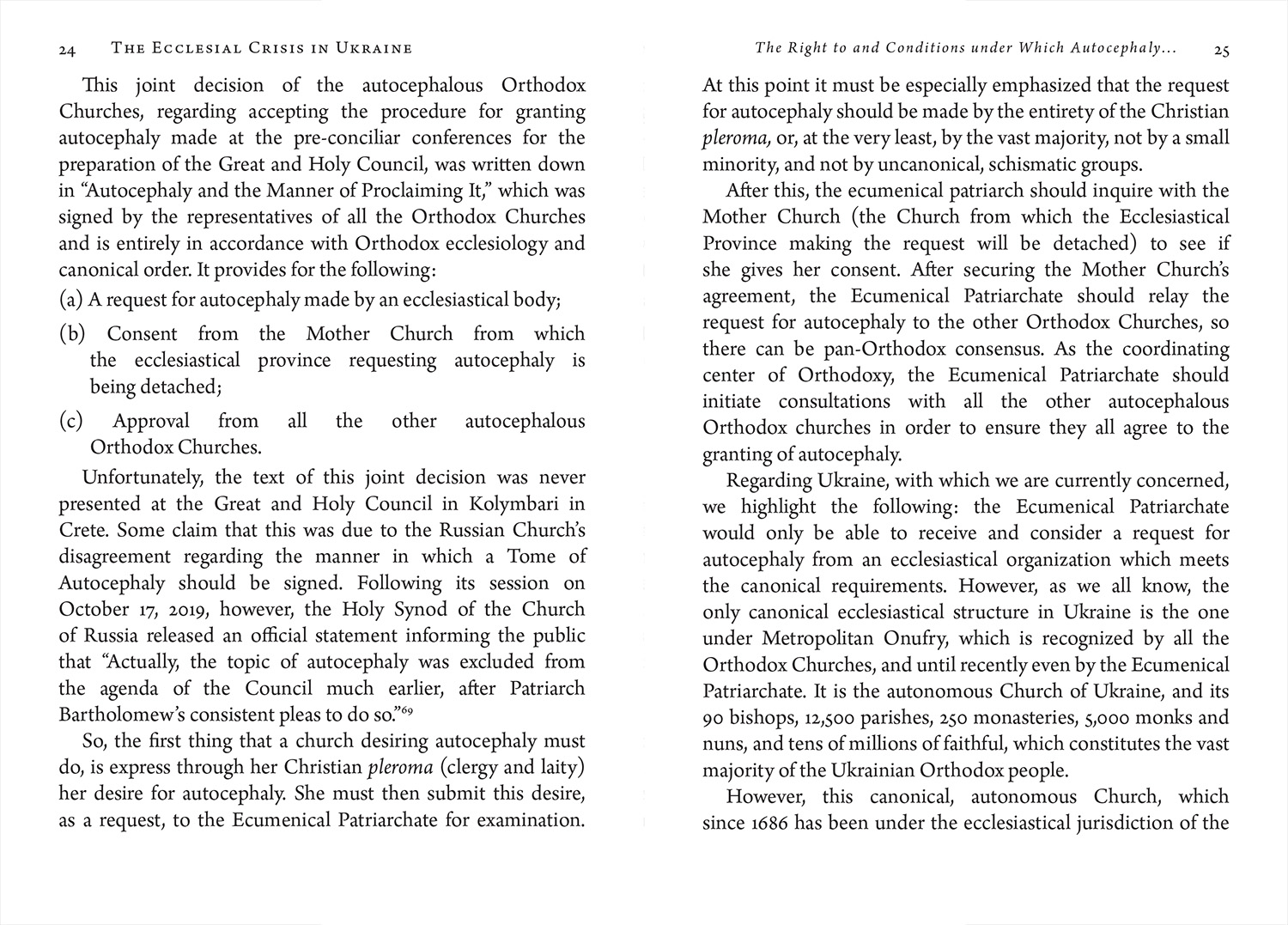 "…a thoughtful and objective treatise for understanding the ecclesiastical crisis that has been created by the Ecumenical Patriarchate’s granting autocephaly to schismatic groups in Ukraine." – +TIMOTHEOS, Metropolitan of Bostra (Patriarchate of Jerusalem)
