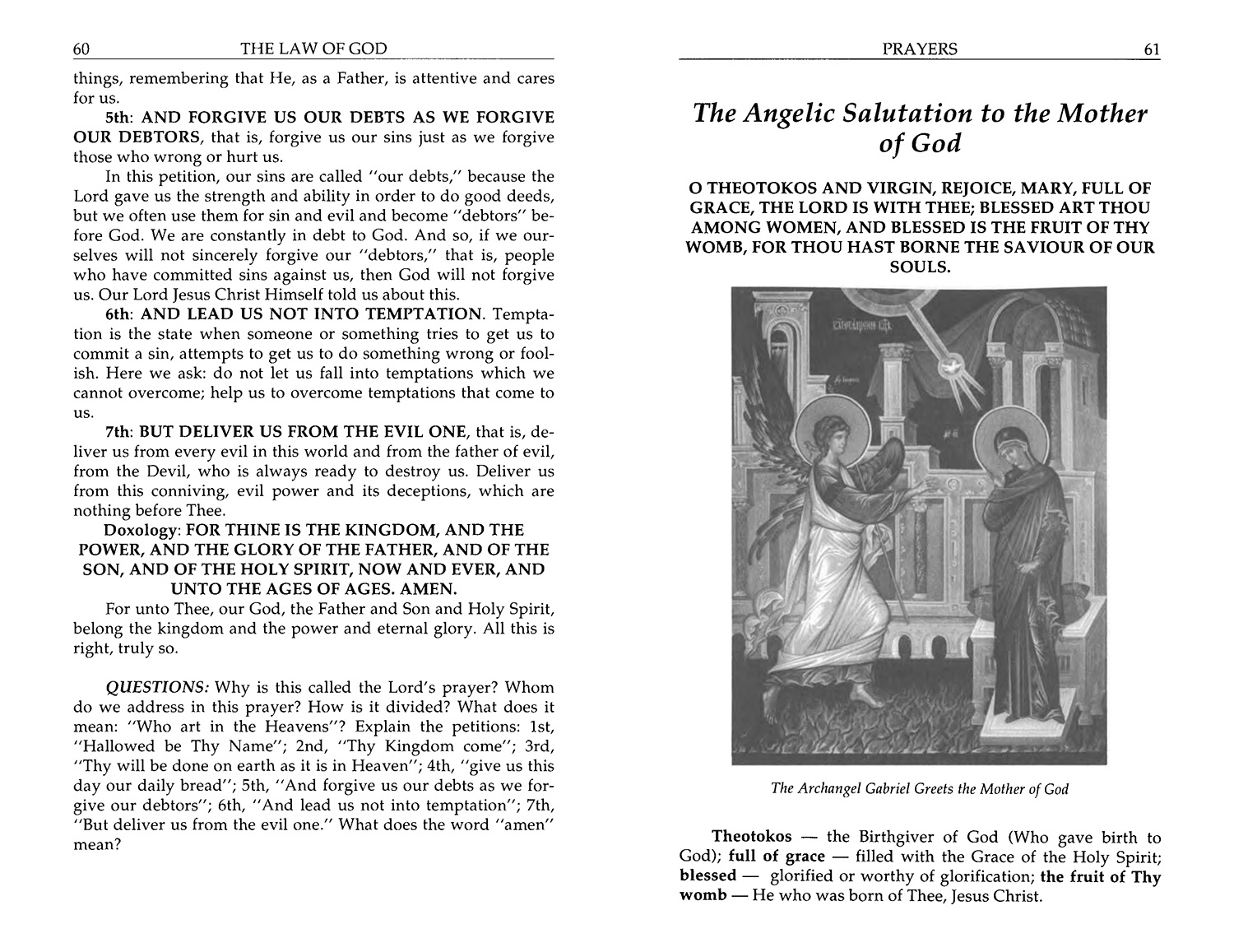 This is the English edition of the classic Russian textbook designed for parents to teach their children "all the fundamental points of the Orthodox Christian faith and way of life." Because children are growing up quickly in a society that raises serious and agonizing questions the author does not teach in naive stories that remain stories only. It offers an overview of the whole of the Old and New Testaments as well as instruction on prayer, worship and what it means to live by the teaching of the Ten Commandments and the Beatitudes. Well illustrated with black and white photographs and icons. The 2011 printing has a green cover and a notch binding for durablilty.