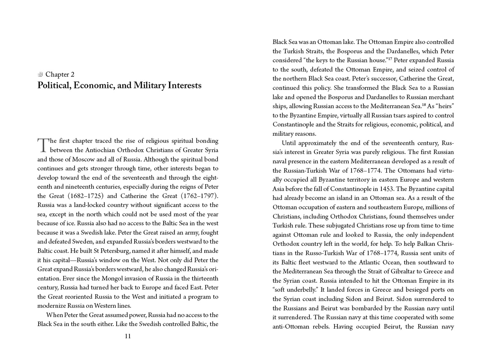 Syria has garnered international news headlines since the Civil war that began in 2011. Foreign intervention has been a major aspect of that conflict and attention has been drawn particularly to that of Russia. Current events can be better understood when examined with an understanding of the history that precedes them. This book illuminates a particular part of the history of the region by examining the legacy of the Russian Empire’s activities in the Near East in the century before World War I and the Bolshevik Revolution. Motivated by feelings of kinship between Orthodox communities, the Russian Empire played a key role in the Eastern Mediterranean, from conflicts such as the Greek War of Independence and the Crimean War to ecclesial matters such as supporting the birth of a native Arabic-speaking hierarchy for the Church of Antioch. Particular attention is drawn to the establishment of the Russian Ecclesiastical Mission in the Holy Land whose philanthropic actions ranged from building schools, hospitals, and churches, to giving material aid to native clergy, and assisting pilgrims. The author shows that the deep historic and religious ties binding these regions together have not dissipated since that time, but continue to influence the Russian state’s foreign policy to this day.